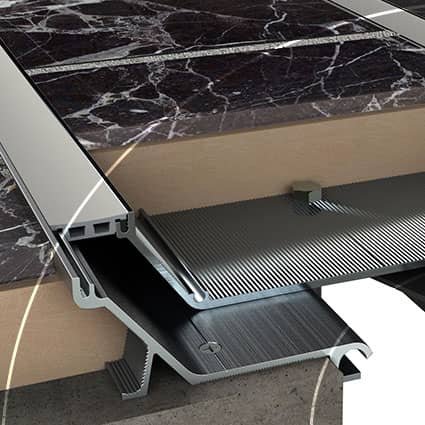 Una junta constructiva básica apta para montaje superficial o empotrado, y puede recibir un acabado que combine con el piso. Tiene una resistencia estándar. No permite movimiento adicional.