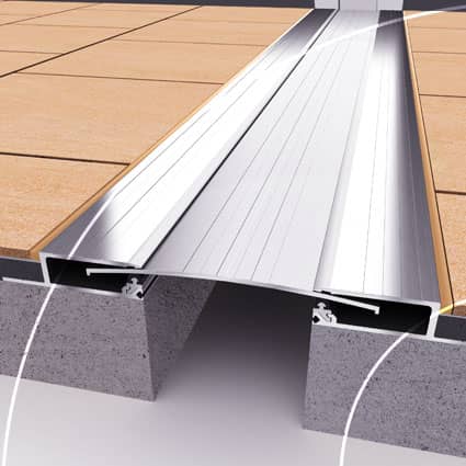 La serie 700 de juntas constructivas se diseñó para soportar tráfico y cargas intensas en lugares como aeropuertos, estadios y otros espacios concurridos. También facilita el paso de ruedas. Su capacidad de expansión le permite soportar fuerzas y cargas muy pesadas.